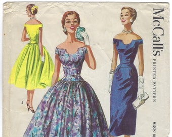 1950 S Elegant Off The Shoulder Cocktail Dress Pattern Etsy Cocktail Dress Patterns Fashion Illustration Vintage Vintage Dress Patterns
